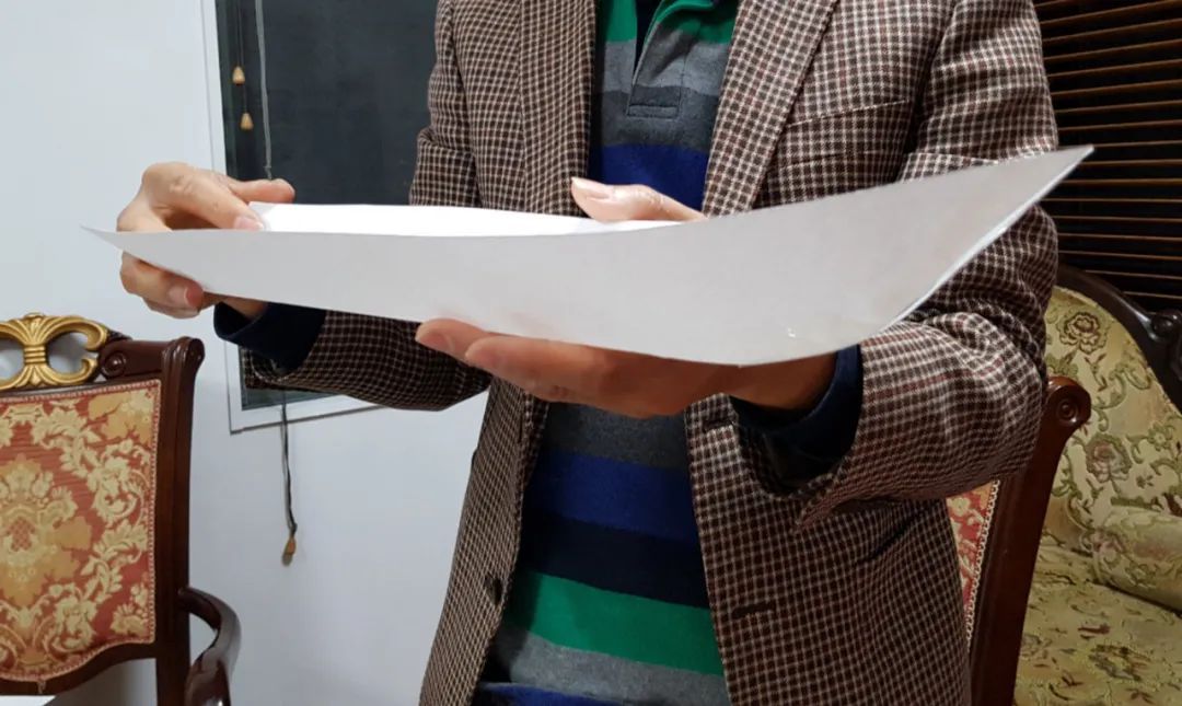 His first model was made with two pieces of paper.