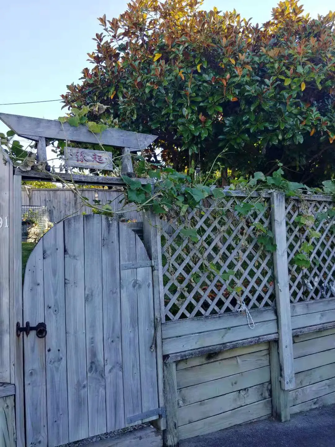 Above the gate, two delicate Chinese characters are engraved on a wooden plaque—缘起 (Yuán Qǐ, meaning "origin of fate").