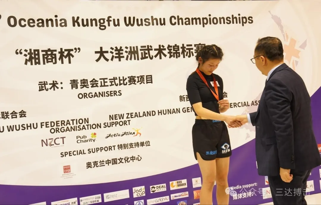 On June 22, at the New Zealand Wushu Sanda Championship held in Wellington, Chinese Wushu Sanda ( a Chinese martial art and combat sport that combines elements of traditional Kung Fu with modern fighting techniques, including punches, kicks, and grappling)athlete Lillian won first place in the competition.